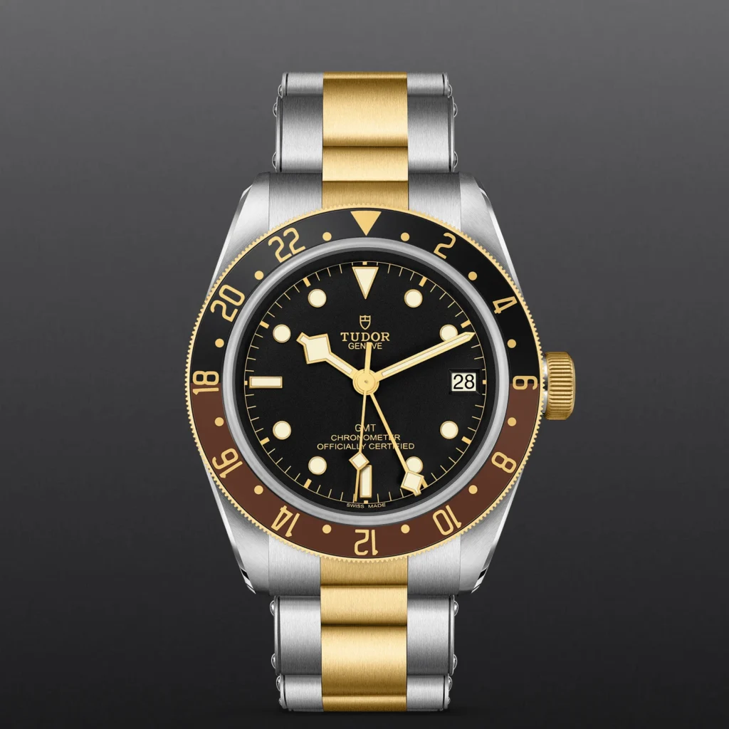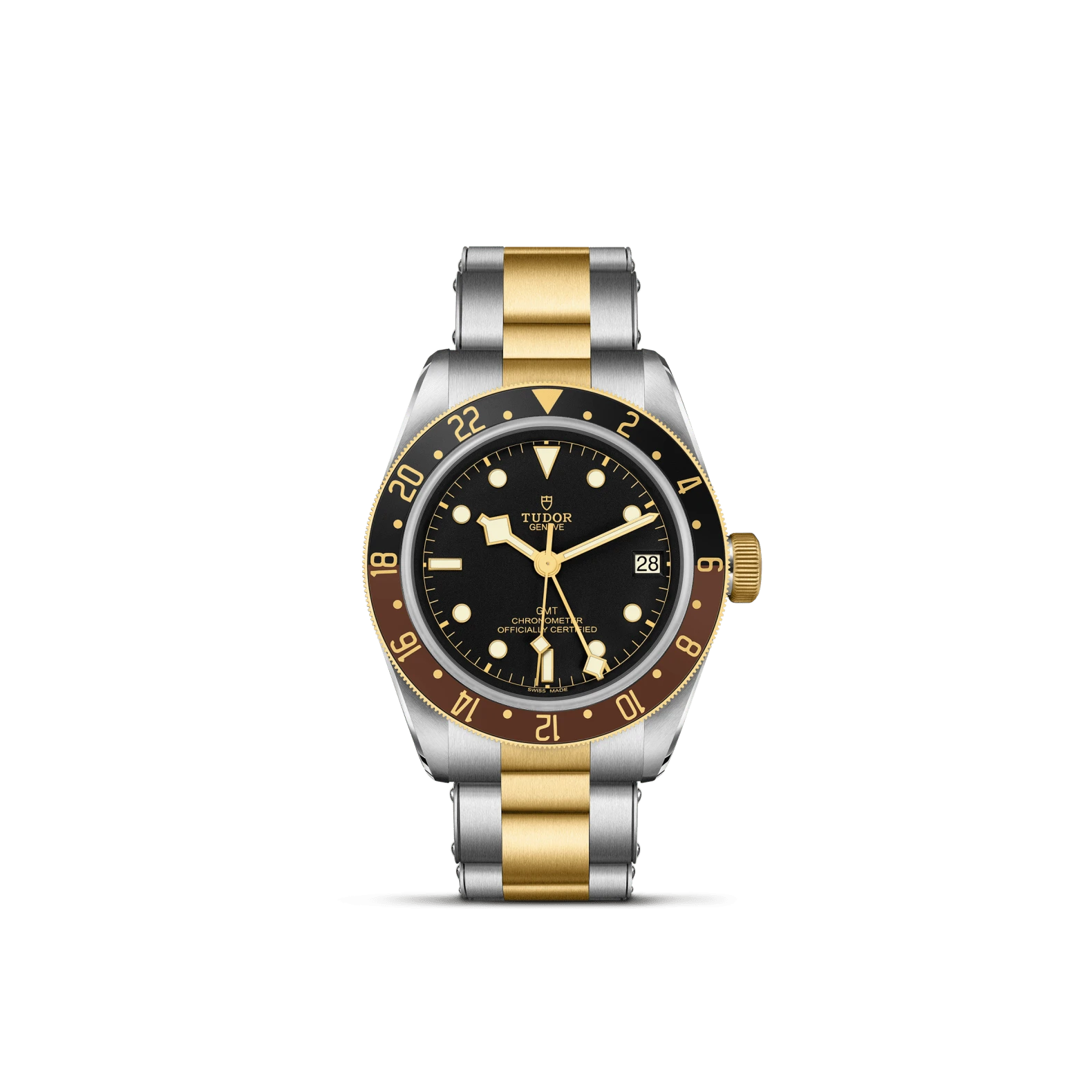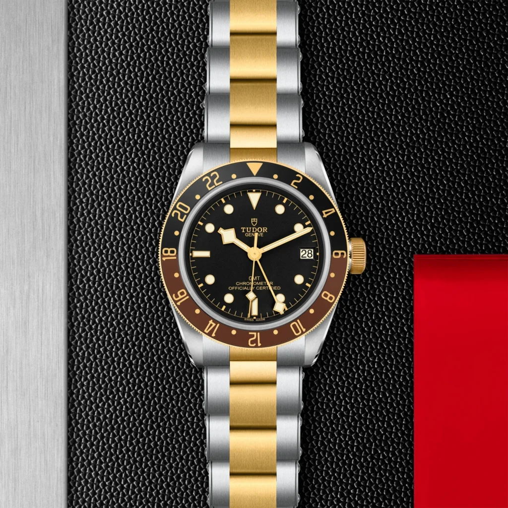 Bezel 48-notch bidirectional rotating bezel with a steel core, covered by a 0.3mm yellow gold cap. 24-hour graduated matt brown and black anodised aluminium disc, 48-notch bidirectional rotating bezel with a steel core, covered by a 0.3mm yellow gold cap. 24-hour graduated matte brown and black anodized aluminum disc