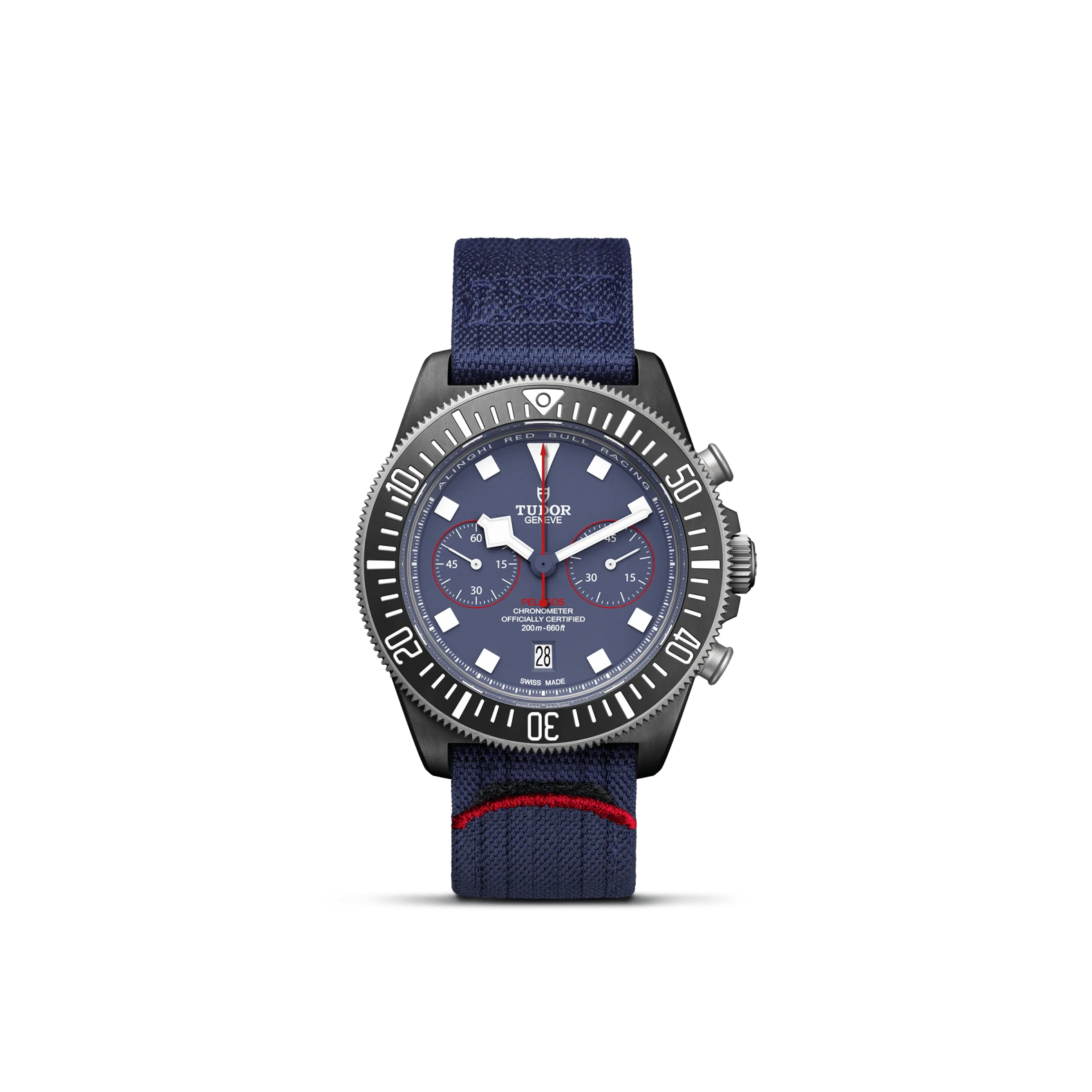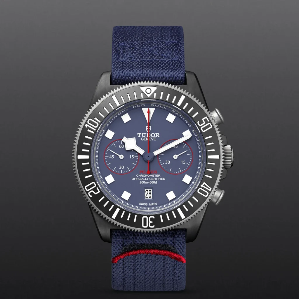 Case 43mm black carbon composite case with matte finish and Alinghi Red Bull Racing logo engraved on the case back
