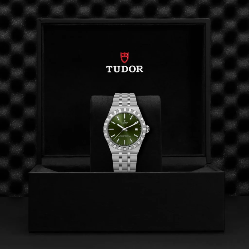 Il nome Royal fu usato per la prima volta da TUDOR negli anni ’50 per sottolineare la qualità superiore dei suoi orologi. La linea TUDOR Royal rientra nella tradizione del Marchio di proporre segnatempo dallo stile sportivo ed elegante, con movimenti automatici e bracciali integrati, ad un prezzo accessibile ma che non scendano a compromessi sulla qualità. Orologi dalle prestazioni tecniche all’avanguardia e dall’estetica raffinata, al crocevia tra i modelli classici e quelli sportivi, i segnatempo di questa linea sono disponibili in acciaio o acciaio e oro e proposti in quattro misure con una vasta selezione di quadranti.