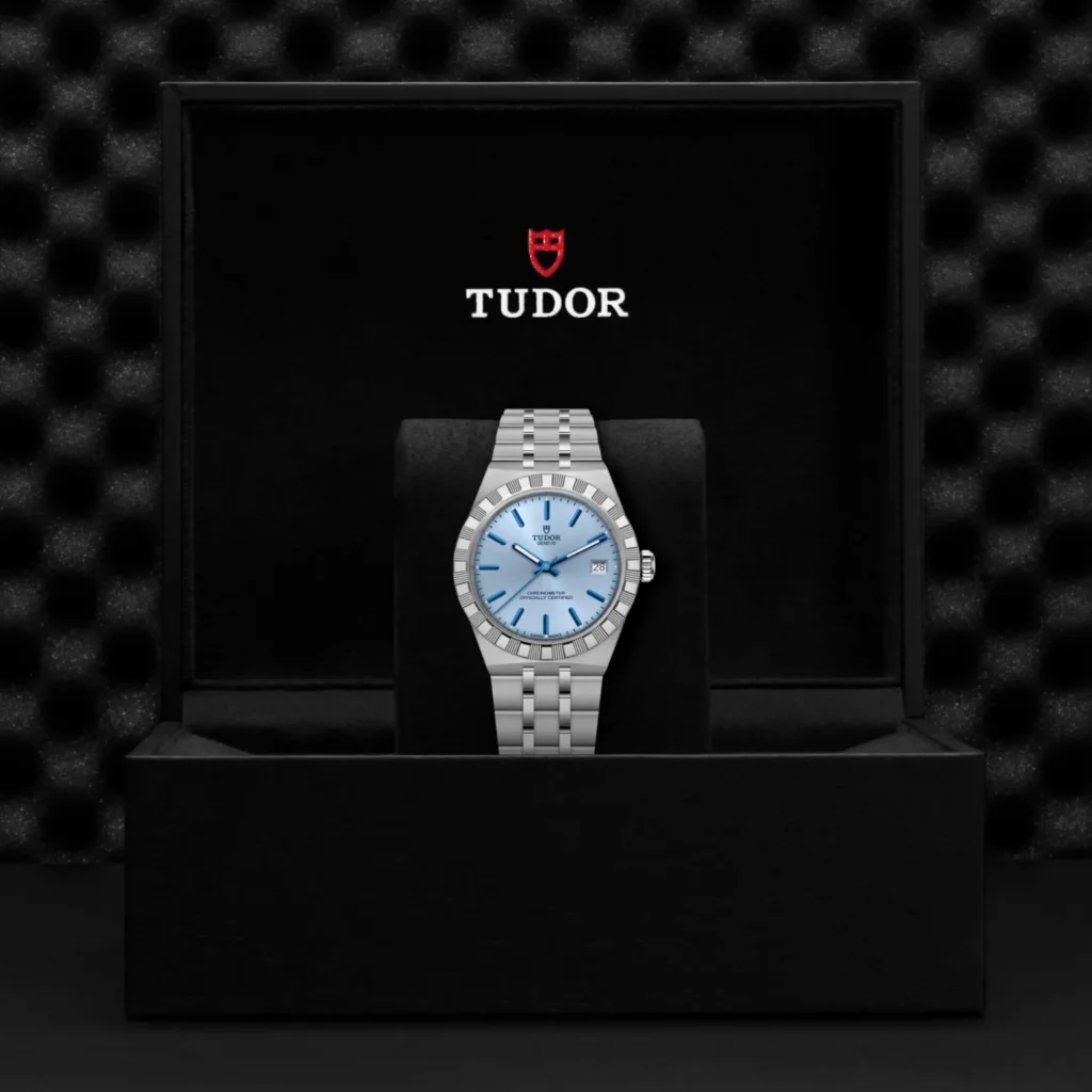 Il nome Royal fu usato per la prima volta da TUDOR negli anni ’50 per sottolineare la qualità superiore dei suoi orologi. La linea TUDOR Royal rientra nella tradizione del Marchio di proporre segnatempo dallo stile sportivo ed elegante, con movimenti automatici e bracciali integrati, ad un prezzo accessibile ma che non scendano a compromessi sulla qualità. Orologi dalle prestazioni tecniche all’avanguardia e dall’estetica raffinata, al crocevia tra i modelli classici e quelli sportivi, i segnatempo di questa linea sono disponibili in acciaio o acciaio e oro e proposti in quattro misure con una vasta selezione di quadranti.