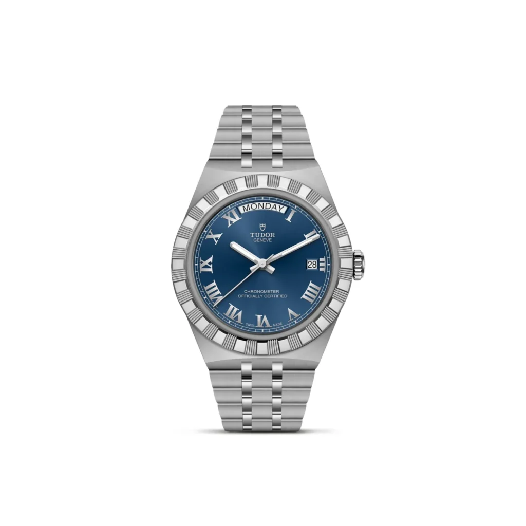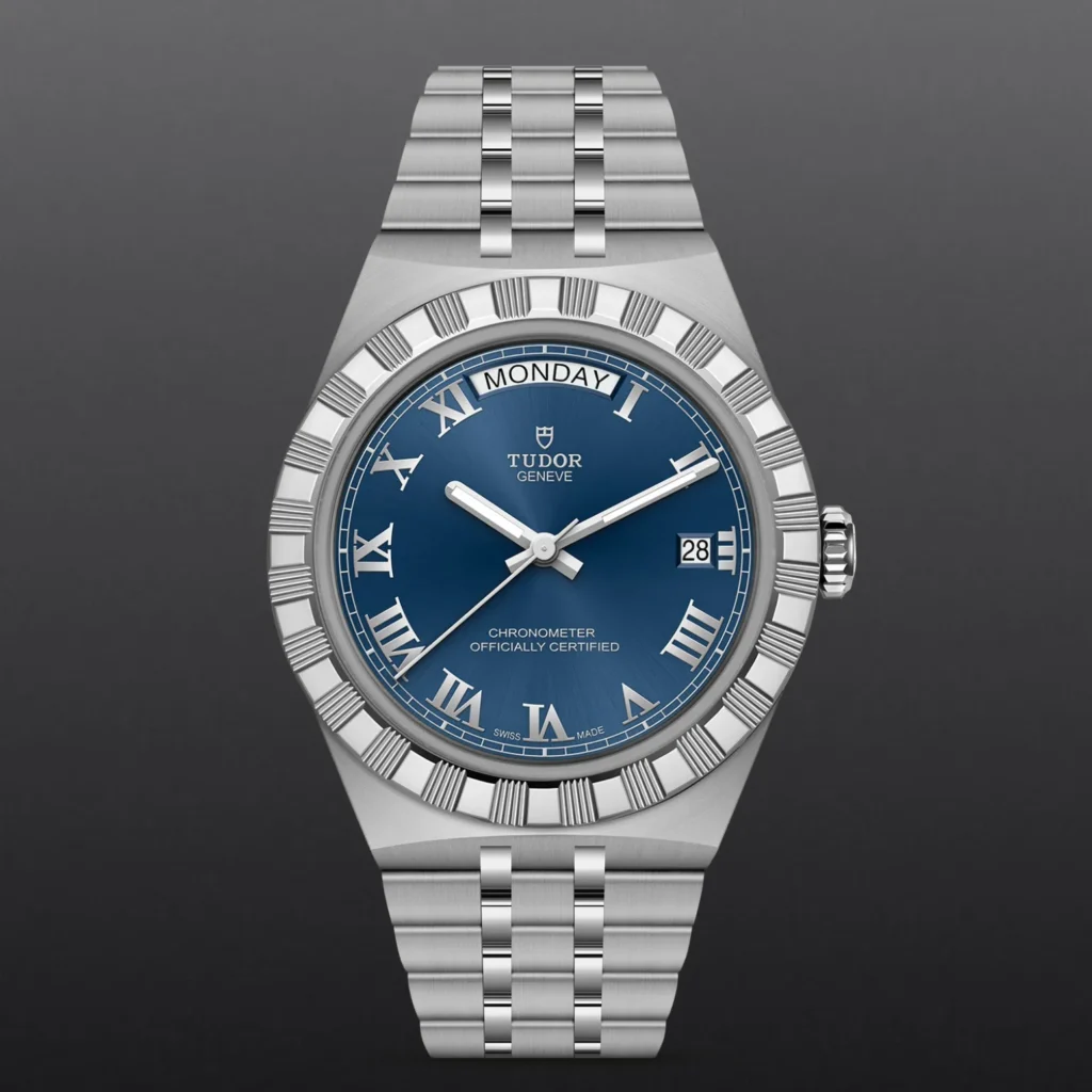 Il nome Royal fu usato per la prima volta da TUDOR negli anni ’50 per sottolineare la qualità superiore dei suoi orologi. La linea TUDOR Royal rientra nella tradizione del Marchio di proporre segnatempo dallo stile sportivo ed elegante, con movimenti automatici e bracciali integrati, ad un prezzo accessibile ma che non scendano a compromessi sulla qualità. Orologi dalle prestazioni tecniche all’avanguardia e dall’estetica raffinata, al crocevia tra i modelli classici e quelli sportivi, i segnatempo di questa linea sono disponibili in acciaio o acciaio e oro e proposti in quattro misure con una vasta selezione di quadranti.