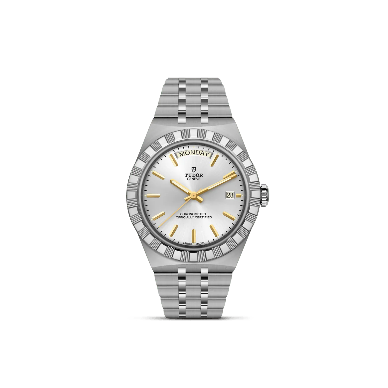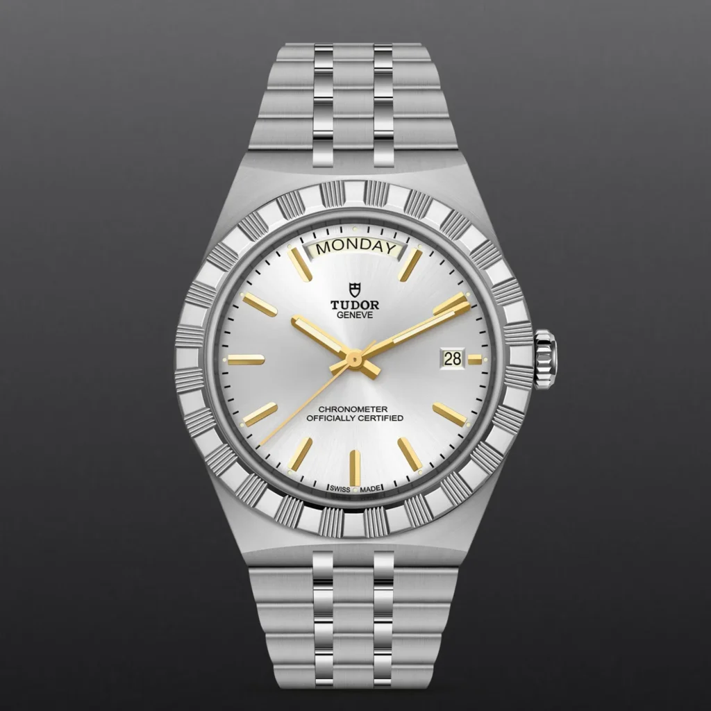 Il nome Royal fu usato per la prima volta da TUDOR negli anni ’50 per sottolineare la qualità superiore dei suoi orologi. La linea TUDOR Royal rientra nella tradizione del Marchio di proporre segnatempo dallo stile sportivo ed elegante, con movimenti automatici e bracciali integrati, ad un prezzo accessibile ma che non scendano a compromessi sulla qualità. Orologi dalle prestazioni tecniche all’avanguardia e dall’estetica raffinata, al crocevia tra i modelli classici e quelli sportivi, i segnatempo di questa linea sono disponibili in acciaio o acciaio e oro e proposti in quattro misure con una vasta selezione di quadranti.